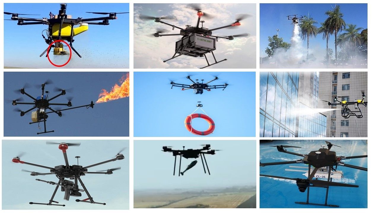 A pulverização com drones é semelhante ao uso de pulverizadores uniporte ou de arrasto, mas podem ser feitas com ou sem o auxílio de um controlador.